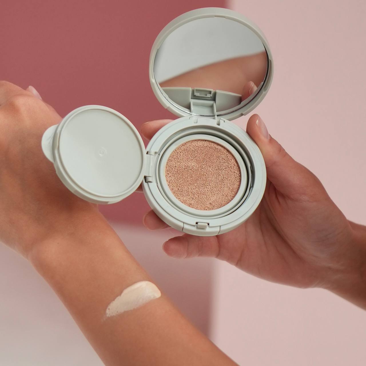 Способ применения: откройте кушон и аккуратно надавите спонжем на поверхность средства. Похлопывающими движениями распределите крем по коже лица, уделяя внимание зоне под глазами, крыльям носа и подбородку. Для более плотного покрытия нанесите второй слой.